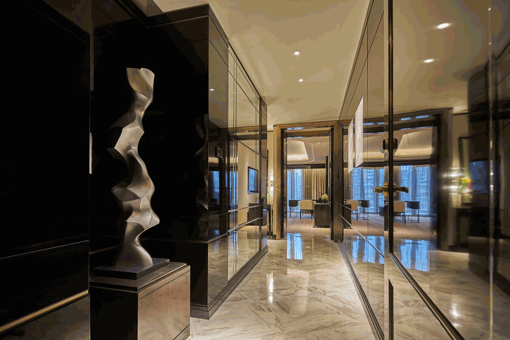 宝格丽酒店为上海宝格丽酒店依然钦点了御用设计组合Antonio Citterio 和Patricia Viel,透过两人倡导的简约思潮打造宝格丽酒店所惯常呈现的“珠宝盒内衬”氛围。