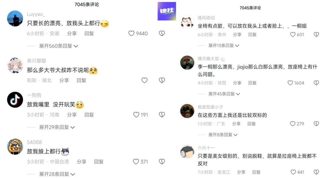 甚至有网友开玩笑说,只要长得漂亮,脚放在他们头上都行。