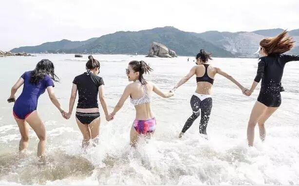 单看她一个人就是满屏的大长腿了,结果带着自己团队员工出海,姑娘们都穿着性感比基尼,围绕在张蓝心的身边就不提了!