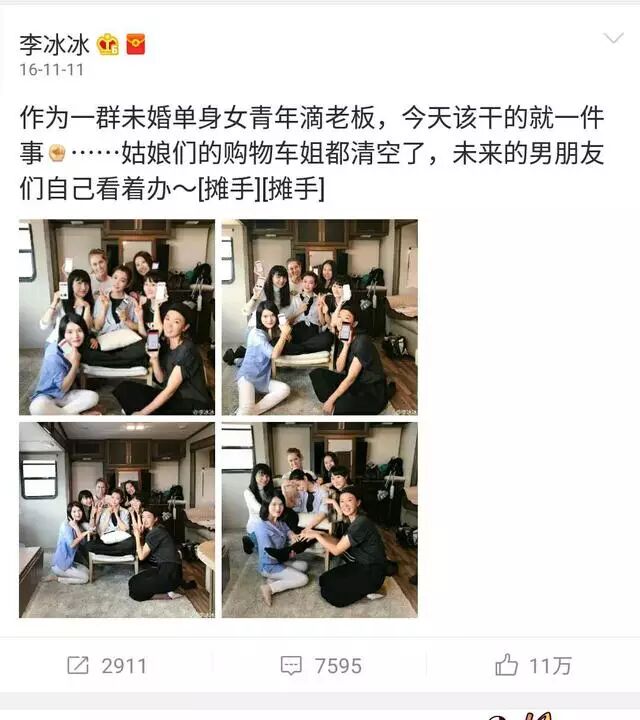 在去年的双十一,李冰冰清空了自己身边单身姑娘们的购物车!
