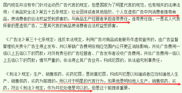 虽然明星是要为自己所代言的产品的质量承担一个责任