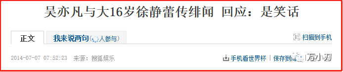 2014年,电影上映,没有激起太大浪花,连吴亦凡贡献的银幕初吻也不是个事,倒是和徐静蕾的绯闻传得沸沸扬扬,搅起一池浑水。