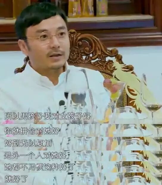 “男孩子要对女孩子好,你就拼命对她好,好到无以附加,另外一个人对她好,她都不习惯这种好了,就好了~~”