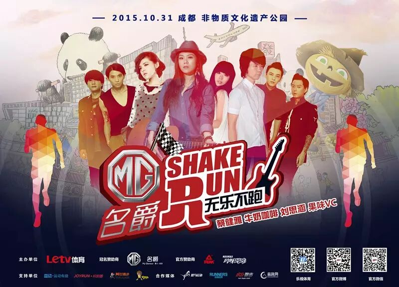 上汽名爵Shake Run音摇跑第六站,将要在万圣节来到我们的熊猫之城——成都了!10月31日在成都非物质文化遗产公园,5000乐跑侠变身万圣节装束,带你体验不一样的万圣节!跑步、明星、变装、摇滚乐,带你High不停,悄悄告诉你本站还有蔡健雅的倾力加盟哦!小编今天还为幸运粉丝带来了10个免费参与的福利名额哦!想得到?就先看看这篇文章吧!