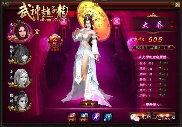 37《武神赵子龙》中,玩家可通过完成28级主线任务开启美人系统,同时免费获得美人“柳擎儿”的体验资格及对应美人的属性加成。美好的事物总是短暂的,美人也会有离开我们的时候,当美人体验期结束时,属性加成也将随之消失,若想将她永久留在身边,还需要通过完成对应美人任务或首充活动。