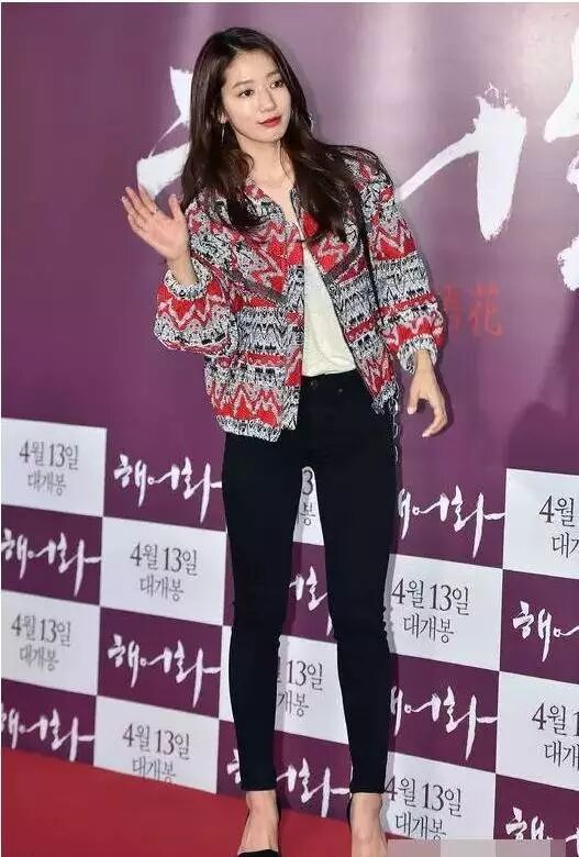 到了4月亮相韩国影片《解语花》的VIP首映礼,这时候看上去已经瘦了不少。脸没那么肉了,更关键是连腿也细了很多呢~
