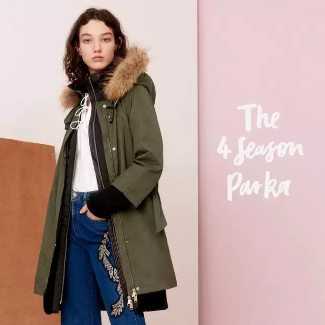 秋天,去掉外面的派克外套,薄款羽绒服的带假皮草边和毛线棉织等细节,调动了秋冬的沉闷气氛。