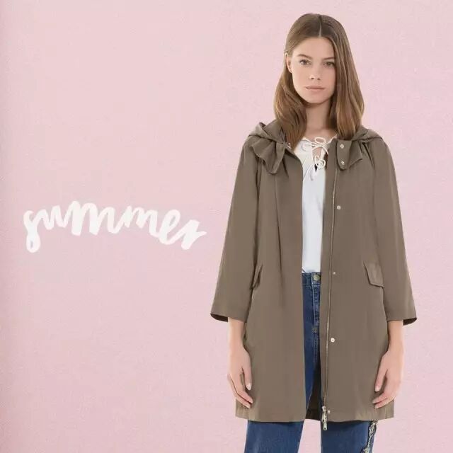 夏天,去掉假皮草帽檐,派克外套便幻化成柔美的小外套,肩前的花褶设计,打造出别致的层次美。