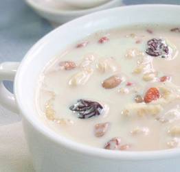 做法:将花生煮熟透后放边上待用,再将燕窝冰糖放入炖盅中,水超出食材部分即可,炖25分钟左右,最后加入熟透的花式与牛奶即可