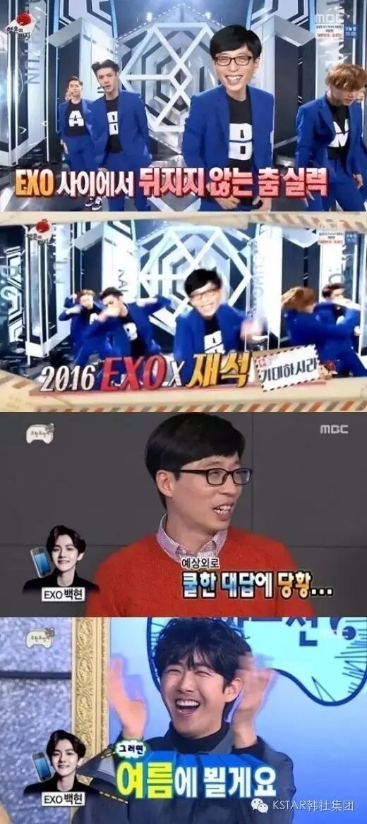 不管说什么,最为好奇的就是EXO与MBC综艺《无限挑战》刘在石的合作。在今年一月份MBC《无限挑战》综艺节目中播出了以今年要做的事情的主题‘幸运的信’的放送,在节目中成员们互相给对方传递要履行的任务。