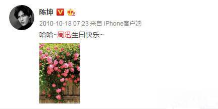 当然,他俩的友谊也确实是可以羡慕死人!陈坤每年风雨无阻的为迅哥儿送上生日祝福!
