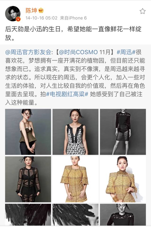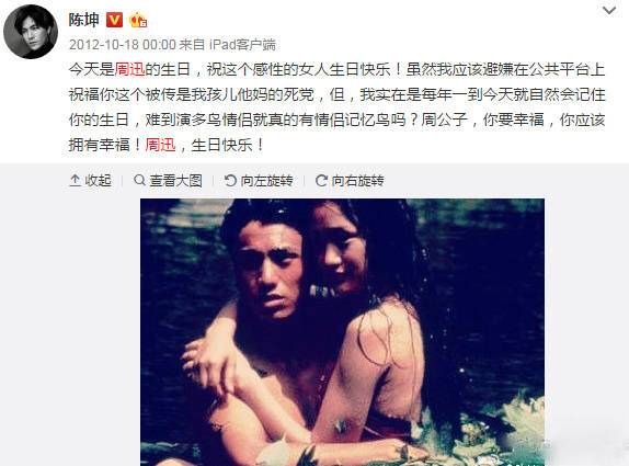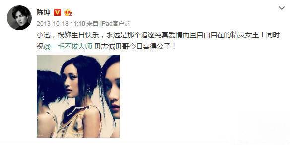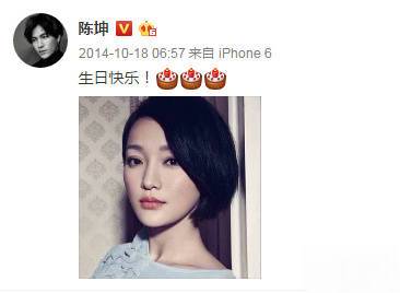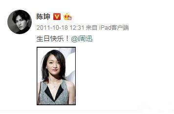 即便是在外界都传周迅是陈坤孩子他妈的时候,陈坤也毫不避嫌的准点送上祝福!
