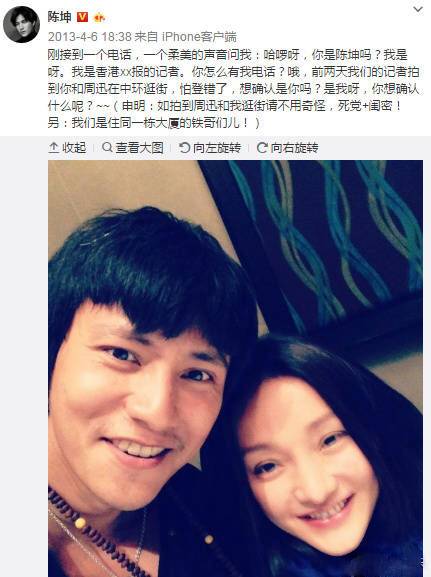 周迅所有的事儿,事无巨细,陈坤都会及时报导,简直是周迅后援会!结婚肯定要祝福。