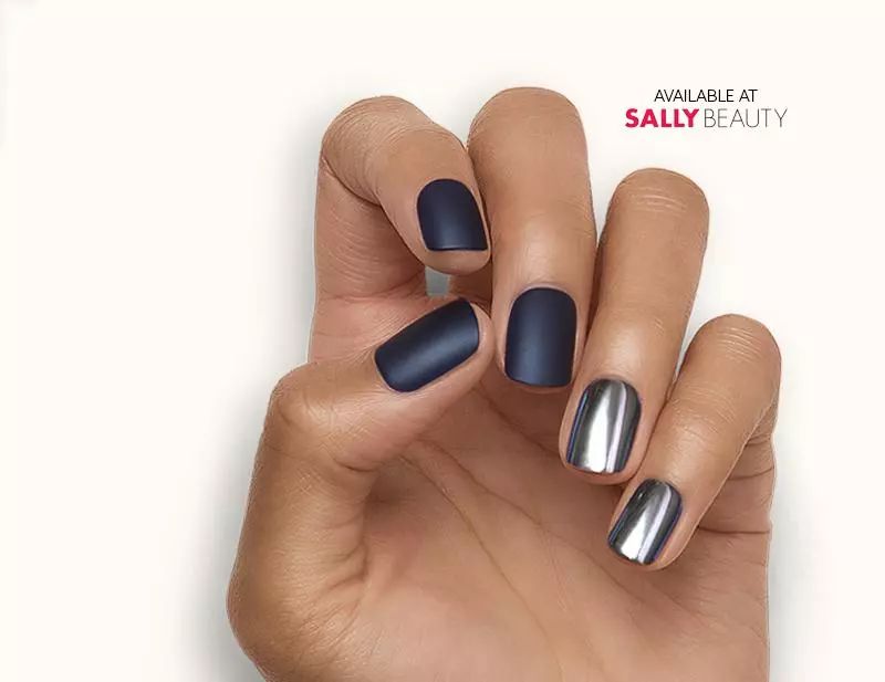 美甲的材质上,有时候也会有点新花样。今年我感觉似乎比较流行金属感,金属光泽和夏天很搭: