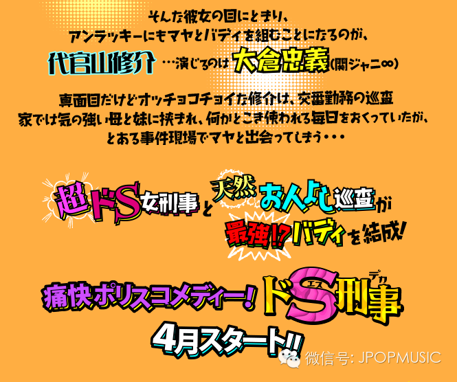 【星闻】大仓忠义--将出演NTV四月新剧『ドS刑事』 东瀛音悦Tai 日韩男星 2015-02-05 17:48:05 543 创作不易,用心坚持,欢迎请BaGua喝几杯爱心咖啡!打赏并支持本文 打赏并删除本文 関ジャニ∞的大倉忠義将出演4月开播的NTV电视剧『ドS刑事』,剧中他将饰演性格天然对上司顺从的巡查代·官山脩介,而他的抖S上司·黒井マヤ将由多部未华子饰演,这也是两人时隔五年再次共演。在两人搭档解决案件的过程中大倉忠義甚至还被逼迫做难为情的COSPLAY。 创作不易,用心坚持,欢迎请BaGua喝几杯爱心咖啡!打赏并支持本文 打赏并删除本文 感谢您的支持鼓励,我会继续努力的!文章地址:用户邮箱:打赏金额:USDT 请输入数字点击”去打赏“,即可进行打赏支持本文章哦 About the Author 东瀛音悦Tai 功能介绍:音悦Tai日本音乐频道 官方认证:北京宽客网络技术有限公司 Related Posts 坂口宪二无期限休止艺能活动,《医龙》第五季怕是盼不来了吧. 2018-04-02 17:06:16 【MUSIC STATION ウルトラFES 2017】演唱曲目公开! 2017-09-15 17:46:19 【长瀬智也*神谷浩史】天呐,次元壁又裂了! 2017-07-04 17:55:44 【稻垣吾郎、草剪刚、香取慎吾】合约期过后退出杰尼斯事务所! 2017-06-19 17:25:06 【相叶雅纪】侦探大人,可否一起喝杯红茶~ 2017-03-17 17:55:13 发表评论