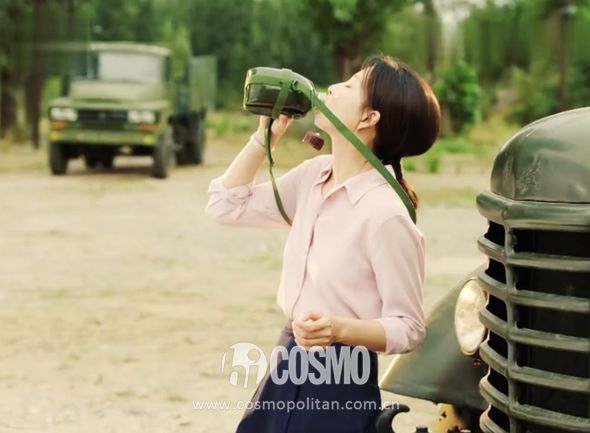 你看第一集同样是出场戏,别的女同志是活蹦乱跳地从汽车上下来,莫莉则慢悠悠的从车里迈出来,穿着一双湖蓝色的高跟鞋。倚在车头上喝水,像一幅不忍心打扰的画。