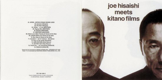 1991年,两人第一次合作在《那年夏天,宁静的海》,随后又合作了《坏孩子的天空》《火花》等。而99年的那部北野武自导自演的电影《菊次郎的夏天》可以说是两人影像故事与音乐氛围相得益彰如虎添翼的最好典范。2001年的时候,这对好基友还出了一张名为《当久石让遇上北野武》的专辑,曲目包含了多部北野武的电影的音乐,依次包括了:菊次郎的夏天(Kikujiro)、四海兄弟(BROTHER)、那个夏天最宁静的海(A Scene at the Sea)、奏鸣曲(Sonatine)、坏孩子的天空(Kids Return)、火花(HANA-BI,第54届威尼斯影展金狮奖作品)。