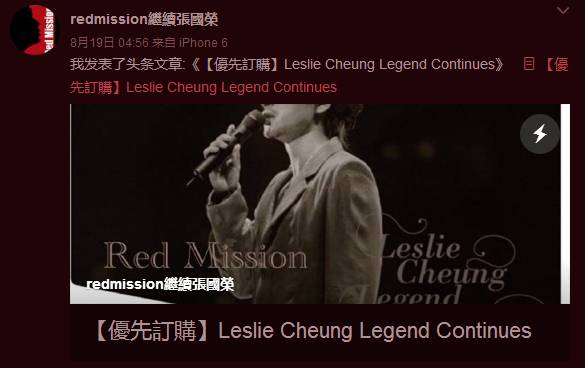 据Red Mission最近在张国荣歌影迷国际联盟的官方微博表示,为纪念张国荣60岁生日,预计会在9月12号左右发售张国荣作品精选集《Leslie Cheung Legend Continues》