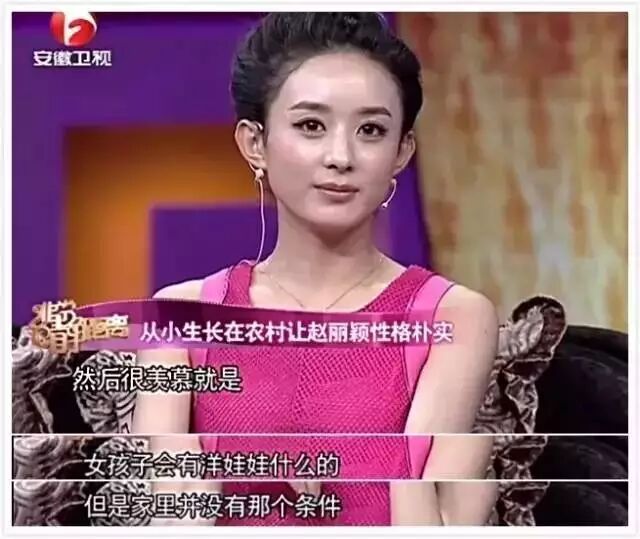 赵丽颖1987年出生在河北的一个农村家庭,妈妈是售货员爸爸是民警。她小时候做过农活、干过家务。