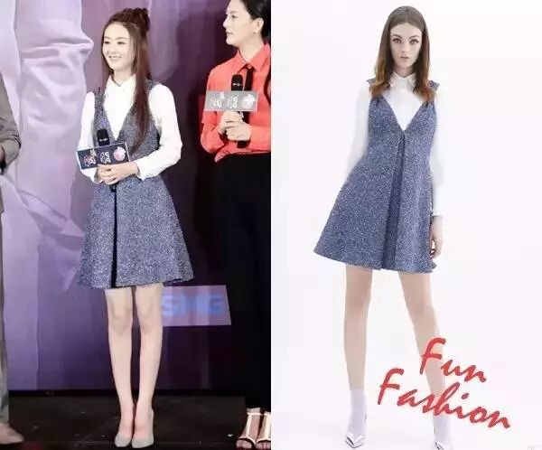 9月20日现身《胭脂》发布会,赵小刀蓝色微闪的A字裙摆与白衬衫搭配,演绎纯净校园风,显得清新可爱。