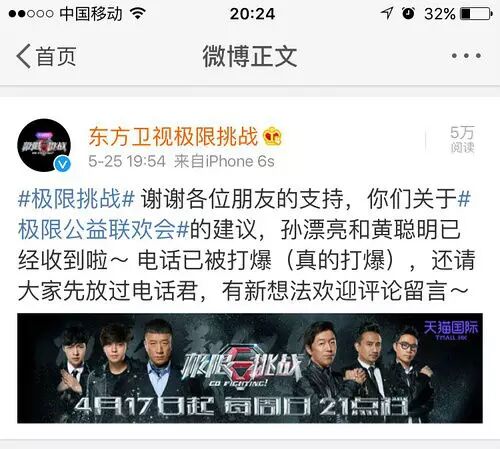 当天节目播出后,极限挑战栏目的官微发布了以下消息,称孙漂亮的电话真的被打爆了!网友纷纷留言,表示“好像错过了整个世界”。但事后也有网友称,这也许是《极限挑战》中孙红雷的电话,并不是他本人的私人号码。