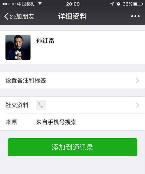 小编顺便用微信搜索了一下该号码,呈现的是名为孙红雷的微信号。没想到颜王竟然如此的低调,微信名都用本人名字,呵呵哒。小编觉得,如果这真的是孙红雷的私人号码,在电视节目中这样不打码的出现,真的好吗?不知道是主持人“情商堪忧“,还是后期为节目吸睛制造的效果呢?