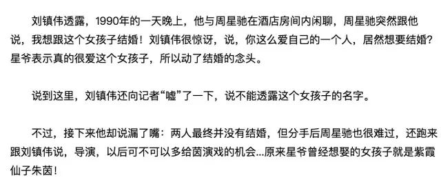 而周星驰曾对刘镇伟说,想娶朱茵。
