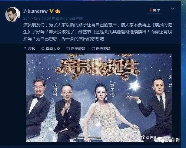 在更早一些,《演员的诞生》就被众多网友曝出了很多的黑幕,遭到大家的怒怼,所以很多的演员为了不趟这次浑水都拒绝了邀请。当时连凯就呼吁大家:“演员朋友们,为了大家以后的路子还有自己的尊严,请大家不要再上《演员的诞生》好了吗?哪天没有饭吃了,综艺节目还是会找其他题材继续播出!你还有戏拍嘛?为自己想想,为一众的演员们想想吧!