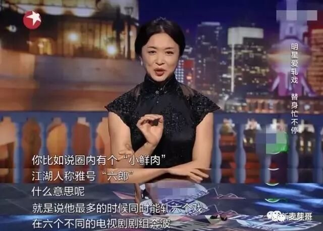 在金星主持的《金星秀》节目上,在娱乐圈一直有“毒舌”之称的金星老师就吐槽,在娱乐圈有个“小鲜肉”,江湖人称“六郎”,最多的时候可以同时出演六部戏,在六个不同的剧组之间奔跑。