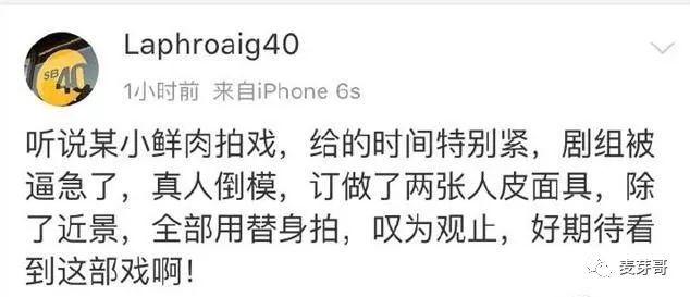 其实,如今的小鲜肉各种抠图,拍一部戏用好几位替身,零演技、耍大牌,已经是屡见不鲜,没有那么多的时间去剧组去实地拍摄,导演组只能用抠图或者人皮面具,五毛特效这些片段。