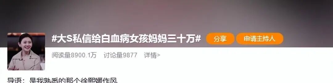 除了这位白血病女孩的母亲,还有一位网友自称儿子患抽动症没钱治疗时,也在很多明星微博下留言寻求帮助。 最终也是大S给了她10万块钱,并且表示不需要归还,只嘱咐“好好照顾孩子就行”。