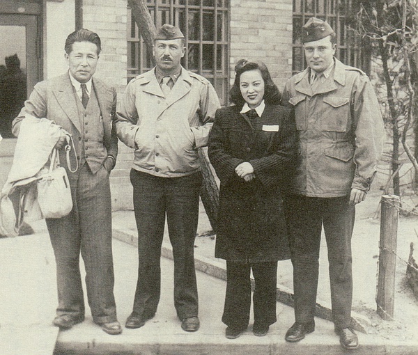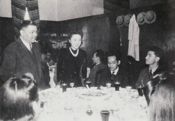1942年在上海新金门饭店,左起张善琨、李香兰、筈见恒夫、岩崎昶