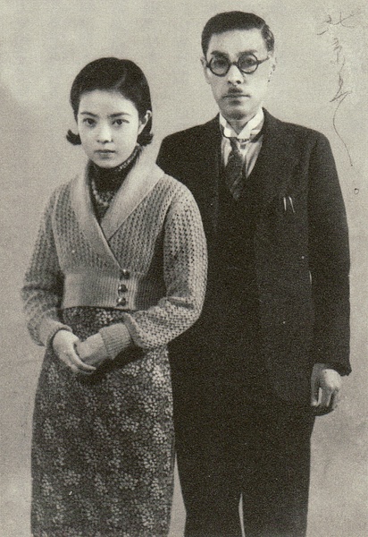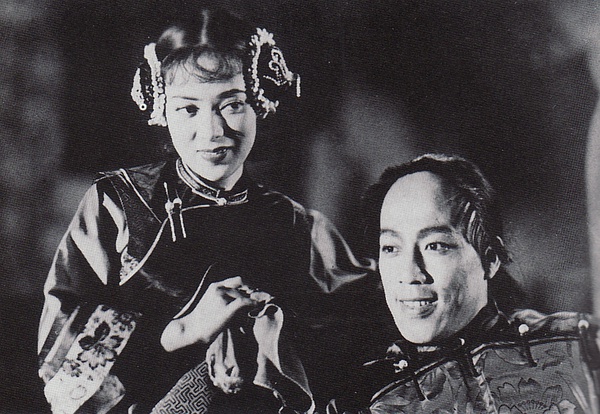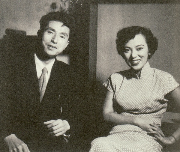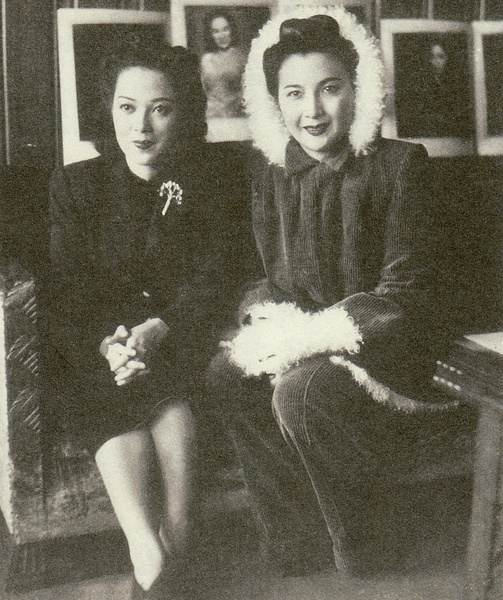 在上海拍《万世流芳》时与主演陈云裳的合影