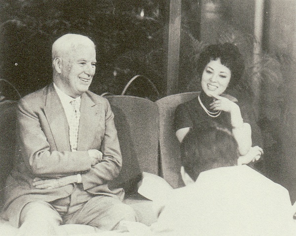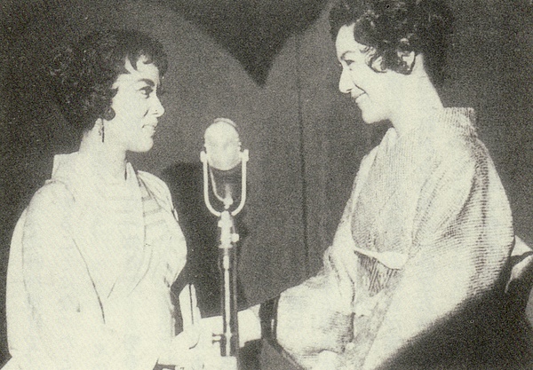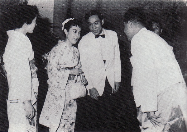 58年息影时,右为原节子。包括原节子在内的东宝全明星阵容出演了她的引退纪念作《东京的假日》