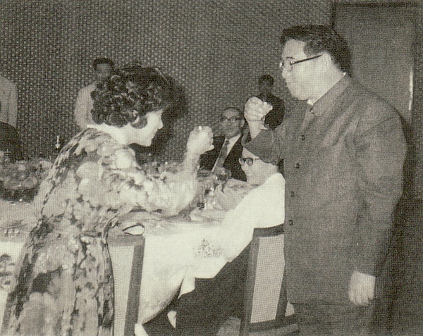 1975年以自民党访朝团成员身份访朝时,金日成向其敬酒