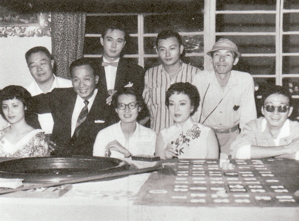 香港片《异国情鸳》(1958)与《神秘美人》(1957)工作人员合照。前排左四李香兰,右二为著名摄影师西本正(贺兰山)