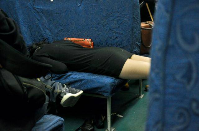 网友“七尺七的身高是256_666666667”:2017.2.7号的火车。太困了什么姿势都有,女人是汉子还是淑女,看来是天生的。女的短皮裤,现在喜欢学超人啊!短裤穿外面。