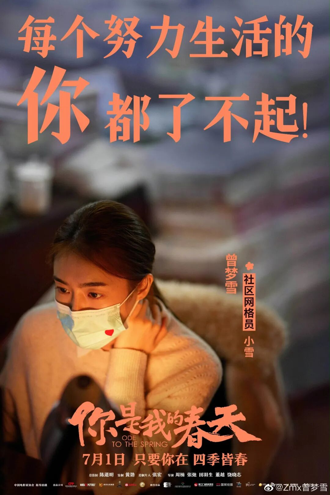 事实上,曾梦雪对待每一个表演机会都很珍视并用心对待,上半年她参演的抗疫题材电影《你是我的春天》在院线上映,她在影片中饰演一个社区网格员,在拍摄前她也近距离体验了网格员的生活,切身处地的观察思考如何与角色更贴近、更相融。
