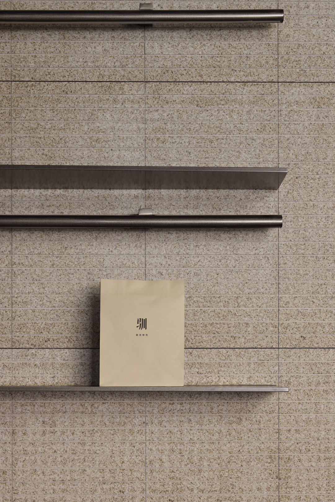 走进“驯”,首先映入眼帘的是整体打磨的石块吧台,石料端厚,天然石材的肌理清晰可见,仿佛置身于质朴的山野之中,来访者逐渐沉浸在空间营造的自然氛围之中。