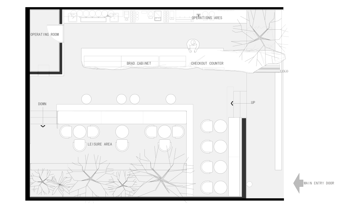 “驯·烘焙”品牌,严选14年野生酵母为发酵基底,对于野生酵母,唯有尊重,而非改化,方能保持天然单本味,品牌以“敬畏野性”为铭,亦期待将此实践于空间美学之中,传递来客。承接本设计案,如何在百余平场地里化用自然山野,将品牌“驯”的气质藏纳其间,又保有烘焙店特质,是此次设计核心。