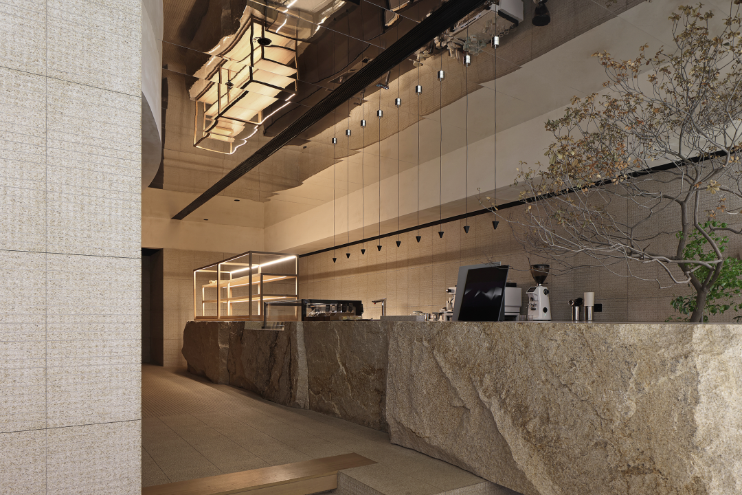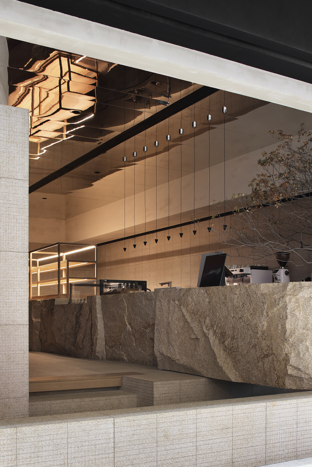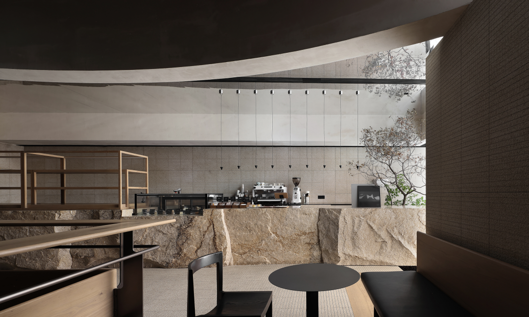 天地无言,却有大美,这一处与山岩相依相存的烘焙空间,由原石荒料构筑,突破了常规中对于烘焙店的想象。以硬朗原石探索隐藏在极简、克制的设计背后,天然朴简之美。在造物细节中,呈现“敬畏野性”的品牌精神,用设计进一步赋予这个空间更丰富的内涵与价值,展现了烘焙空间另一种不同的设计可能。