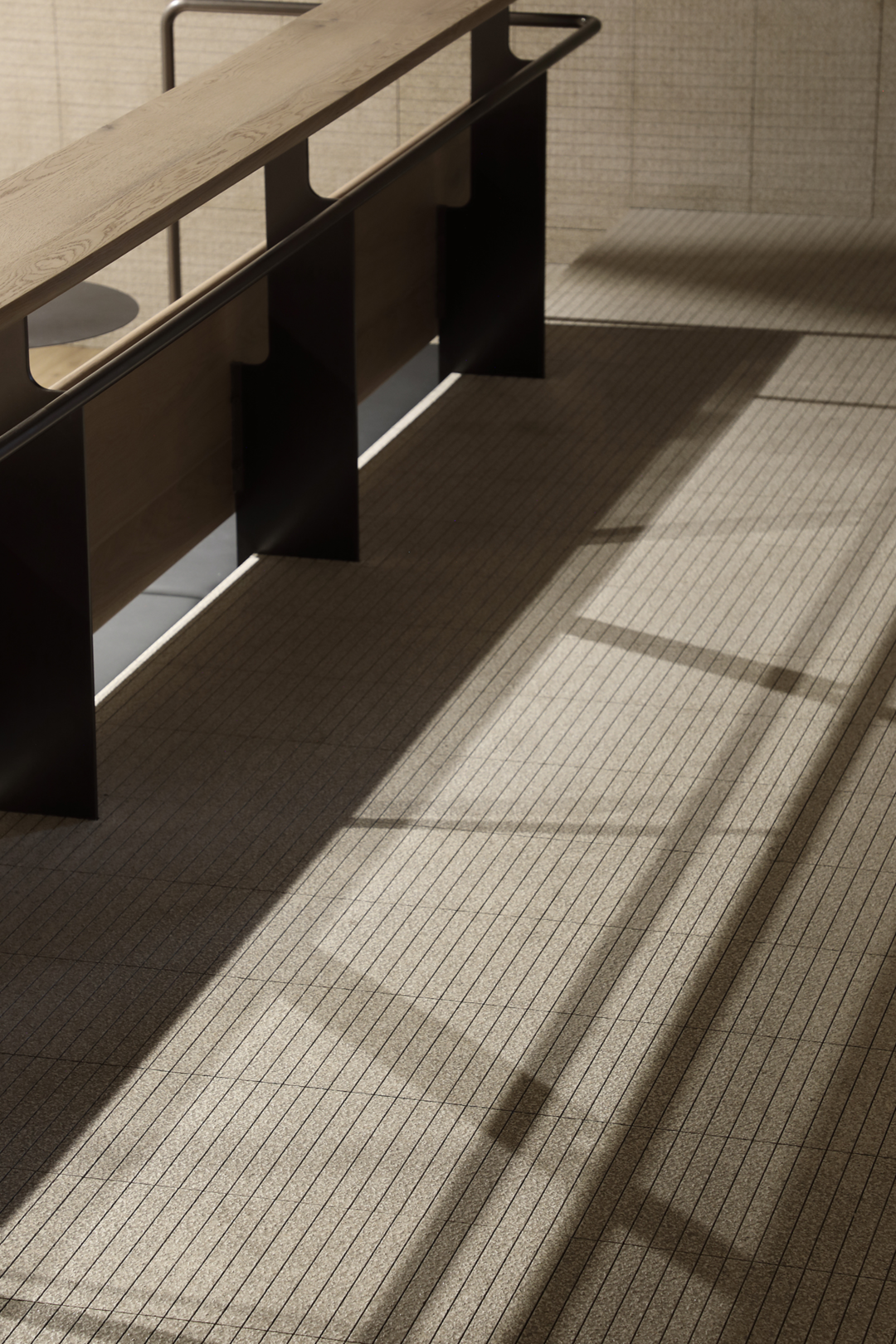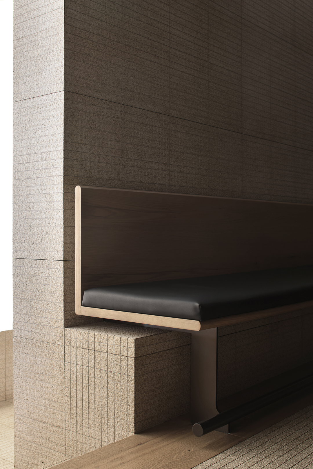 设计师选择了纹理细腻、色泽与石料相协调的橡木,用于制作空间的台阶、边栏、扶手和座椅。