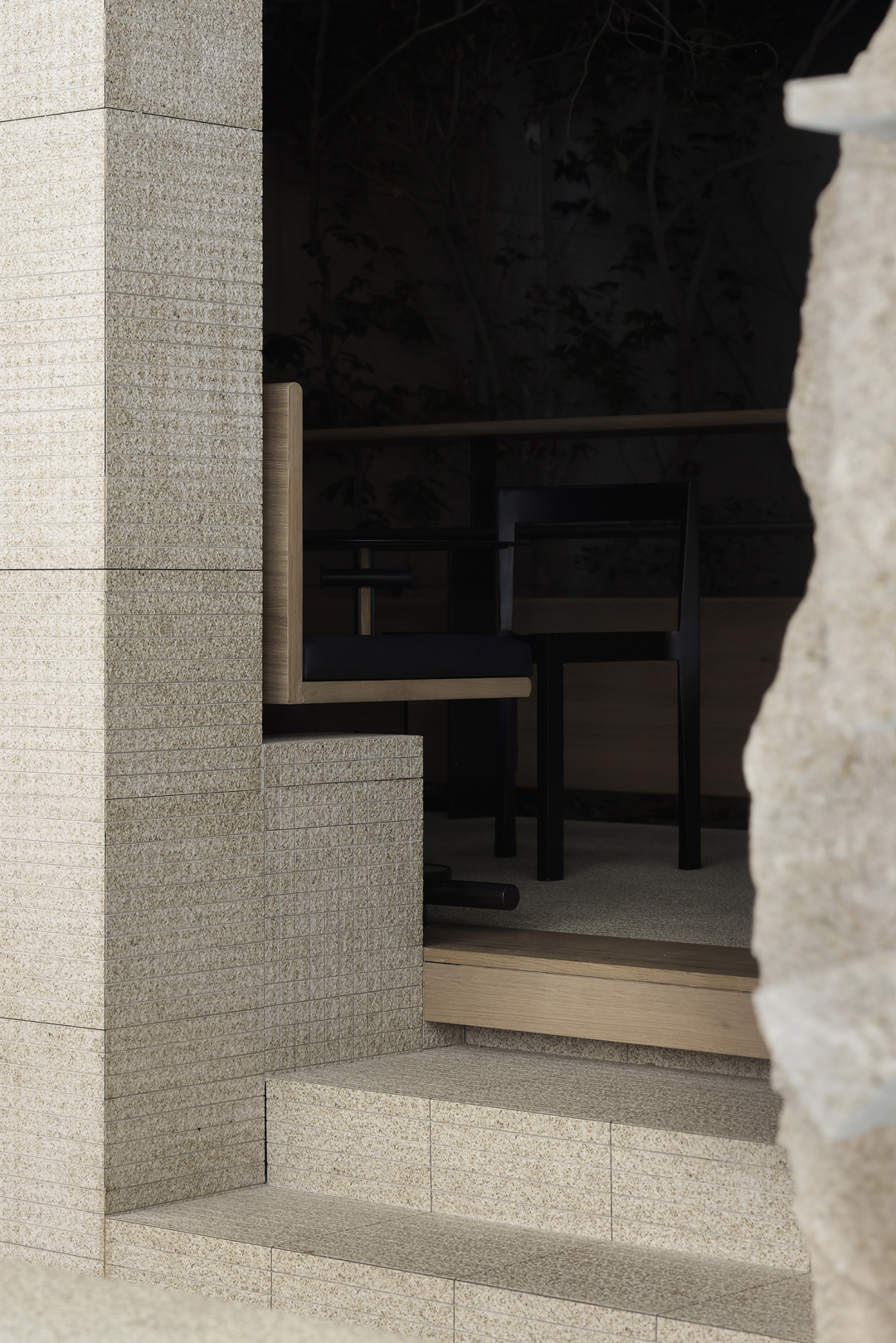 这个案例与众不同之处在于,所有主要材料都是由数块原石荒料打造而成,它们被充分利用,用于空间的分隔、铺装和涂装等方面。