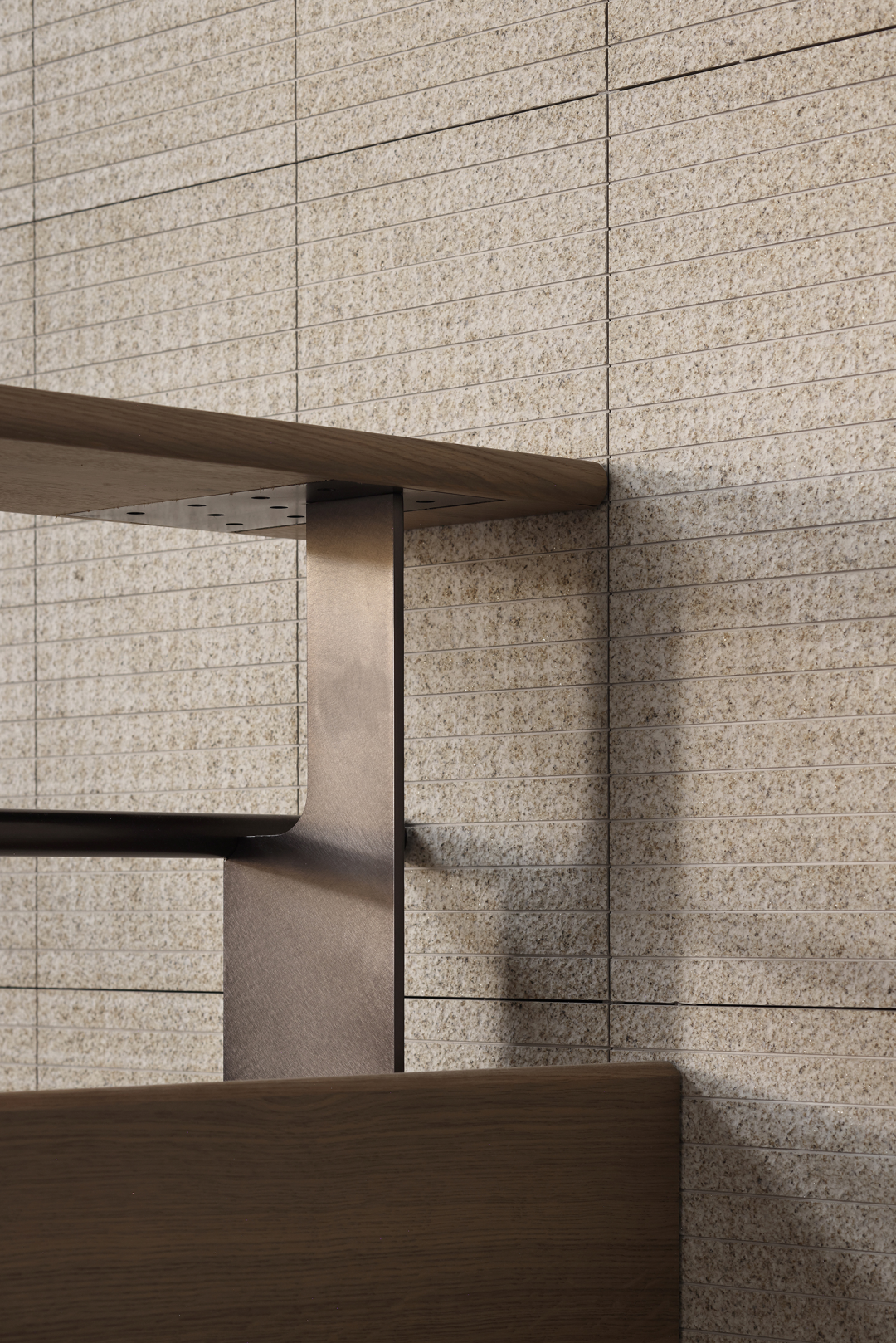 材质、色感、肌理,各元素相生相辅,一块荒料化为各般面相,又全归于一,构筑出空间天然的统一氛围。
