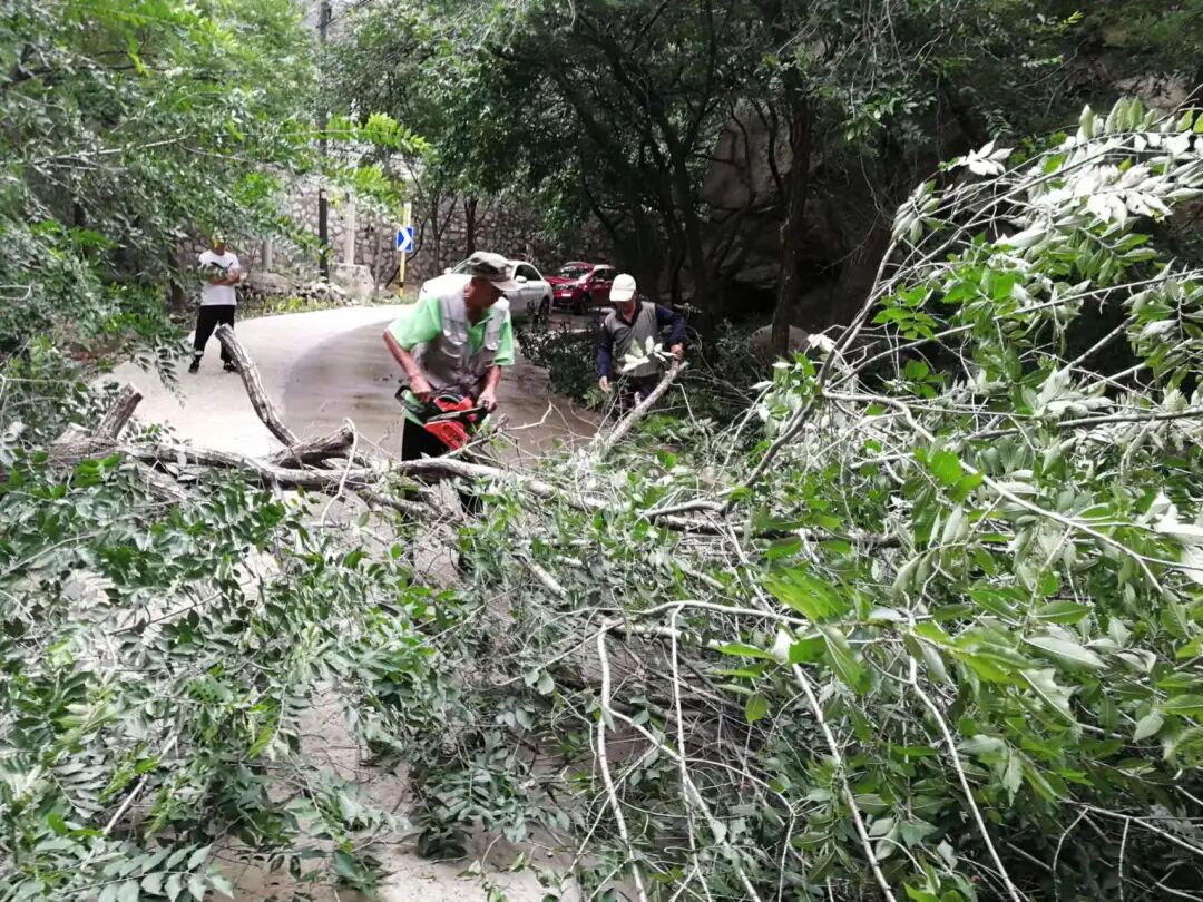 7 月29 日至8月2日,受台风“杜苏芮”影响,八达岭镇遭遇历史罕见特大暴雨,降雨过程长范围广总量大,短时降雨极强,辖区平均降雨量为337.2毫米,最大降雨为石峡村464.4毫米,帮水峪河出现山洪险情。暴雨和山洪导致镇域内1035.77亩林地受灾,其中帮水峪村85亩槟子树、海棠树,里炮村10亩苹果树、樱桃树,石峡村120亩海棠树受灾,八达岭集体林场820.77亩林地受灾。