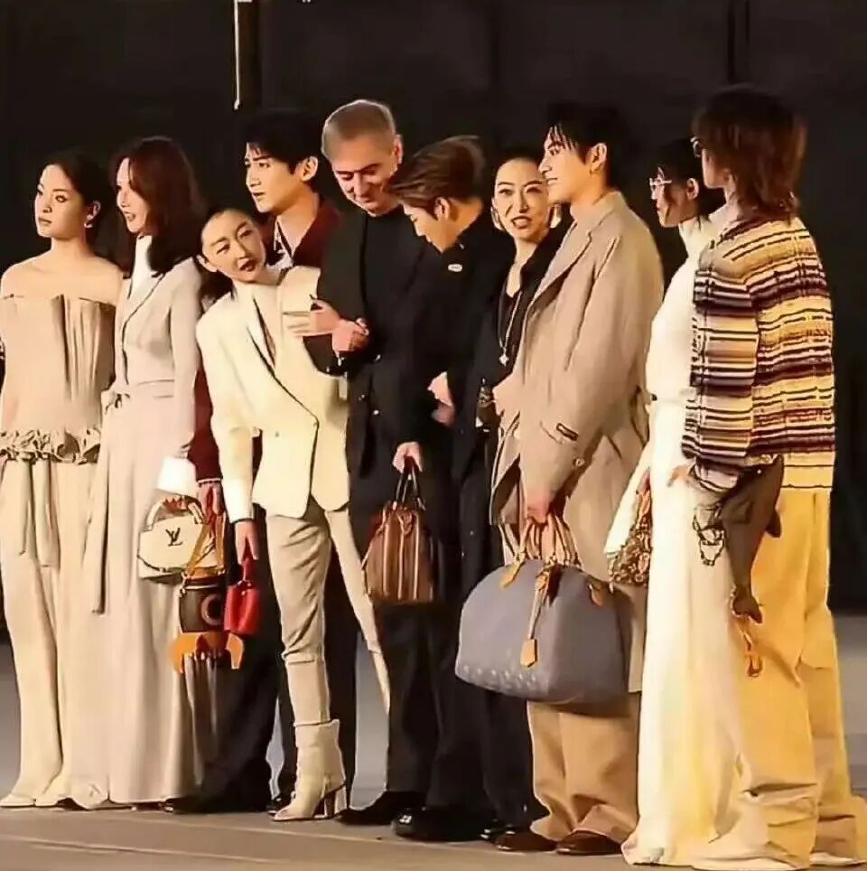同场造型被指用力过猛,米白外套配灰色长裤搭红手提包,被调侃“像赶年会的主管”,与同场明星精致造型形成反差。