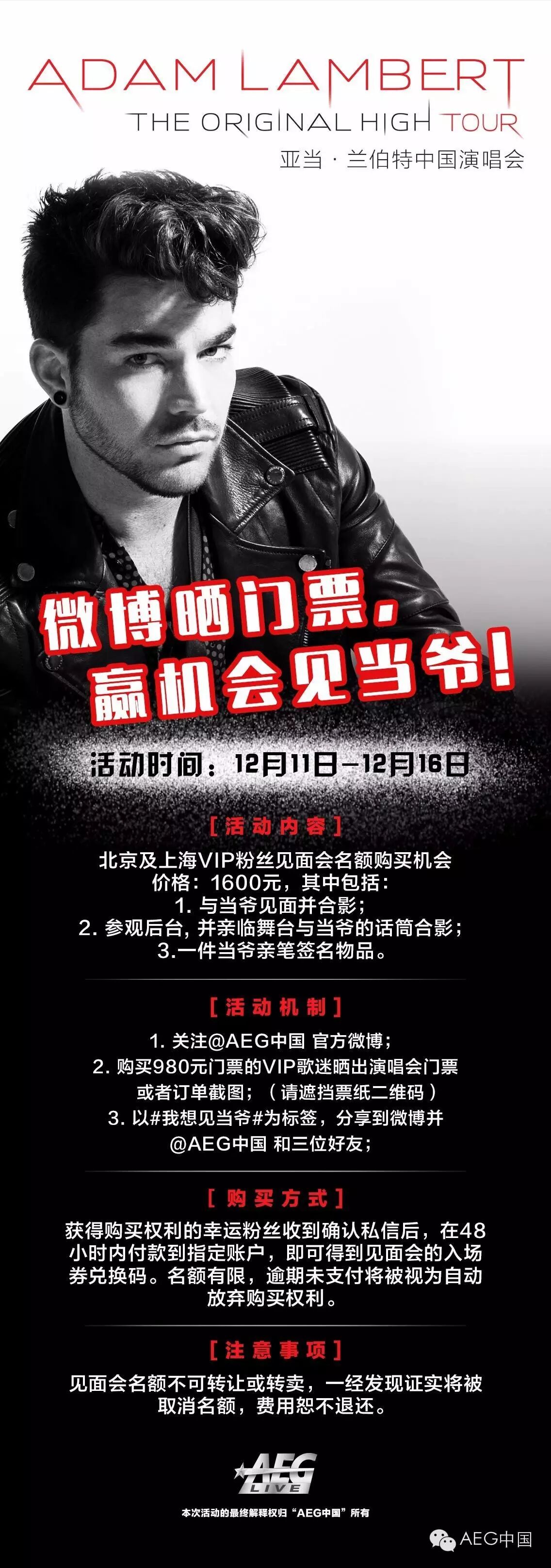 现在,只要你在微博上参与@AEG中国 官方微博的晒门票活动,就有机会和当爷见面合影噢。爱他,就要抱紧他!!