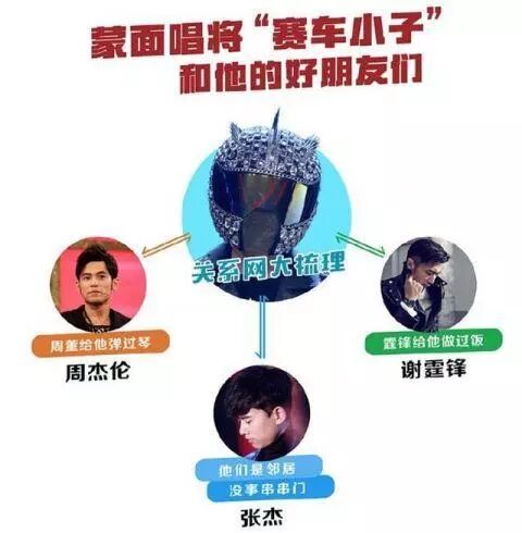 近日,《蒙面唱将猜猜猜》第五季开播之后,话题热度不断攀升,而这一位蒙面唱将“赛车小子”更是吸引了不少热度。“赛车小子”演唱了周董的《听妈妈的话》之后,在主持人请他自我透露一些消息时,他却说:“吃过霆锋做的菜,看过杰伦谈的琴,张杰嘛,主要和我住的不太远,没事儿经常一块儿串串门。”