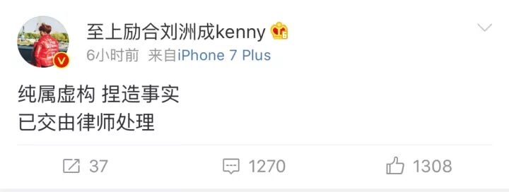 之后刘洲成又戏精的发微博否认了恋情,并且文案非常的眼熟,这不是郭敬明用来回应性骚扰事件的说辞吗?