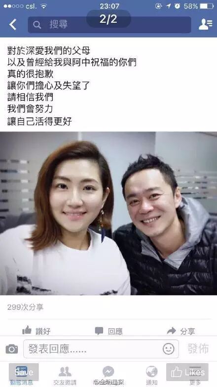 任家萱(Selina)和张承中(阿中)4日宣布离婚!两人今晚分别在脸书公布离婚消息,宣告5年婚姻画下句点,两人曾携手走过Selina火吻灾难考验,感情甜蜜恩爱,离婚消息曝光,令人震惊。